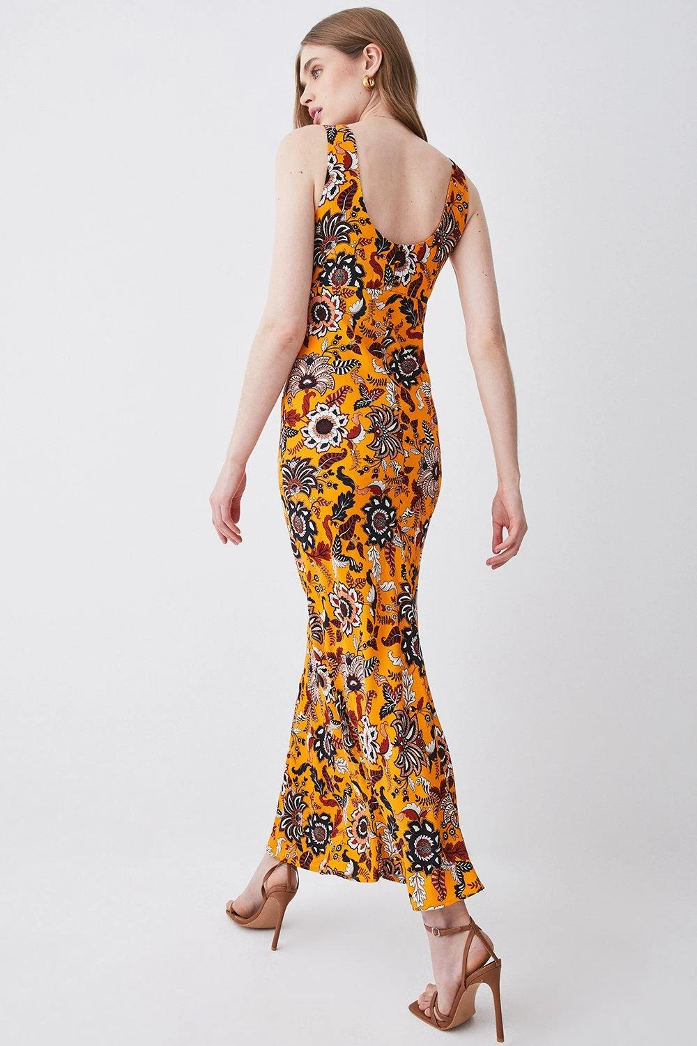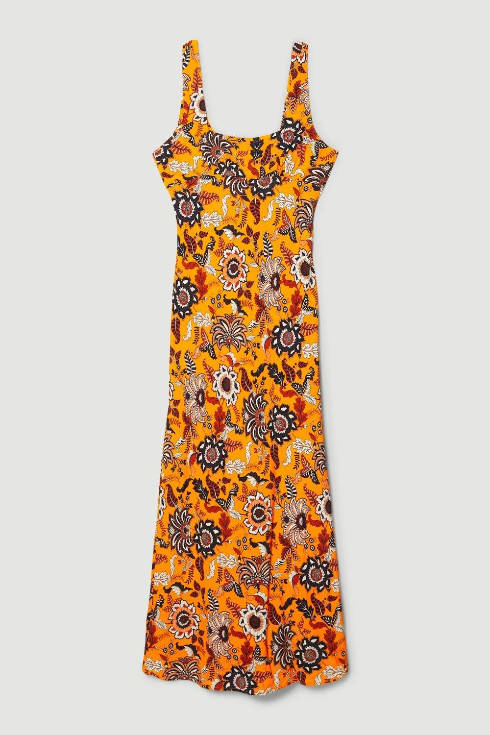 The vibrant colour palette of this dress beautifully complements a batik floral print, while a fluid silhouette drapes down to a maxi hemline. A square neckline gives the piece elegant appeal, style the dress with nude heels for an elevated ensemble, or boots and a leather jacket for an everyday look.