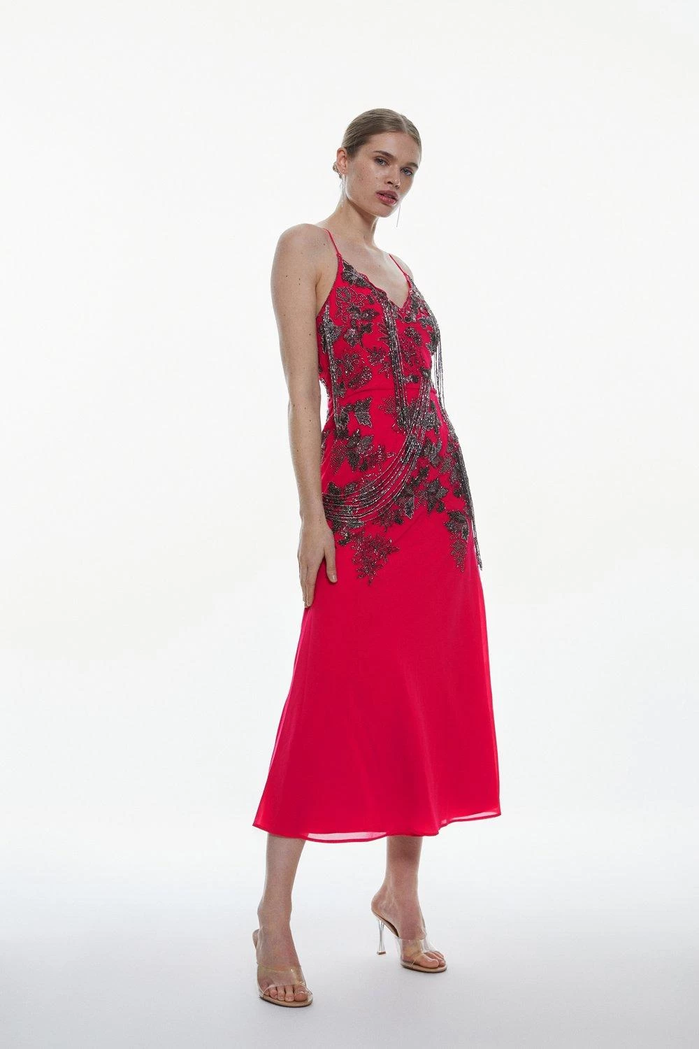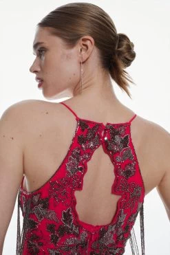 Karen Millen Beaded Embellished Fringed Satin Woven Slip