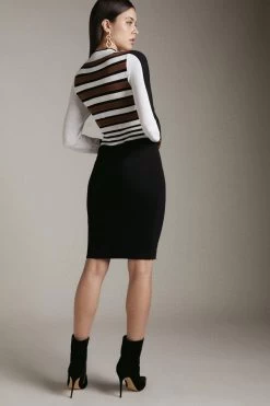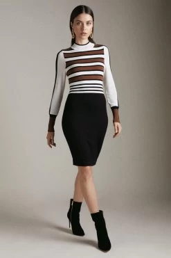 An instant style saviour, it’s made for the desk-to-dinner dash. This knitted dress features a figure-hugging bodycon fit, round neck, striped design, long fitted sleeves and comes in a mini length.