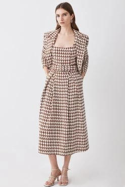 Main: 76% Cotton, 15% Polyester, 8% Viscose, 1% Elastane. Lining: 100% Polyester. Dry clean only. Model wears UK 8/US 4. Model height: 5″9. Length measurement: 96cm.