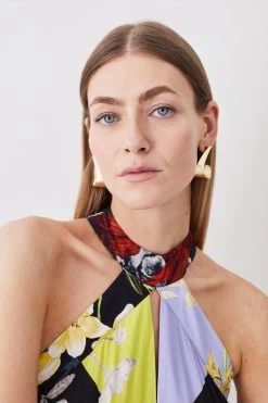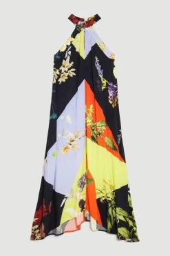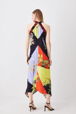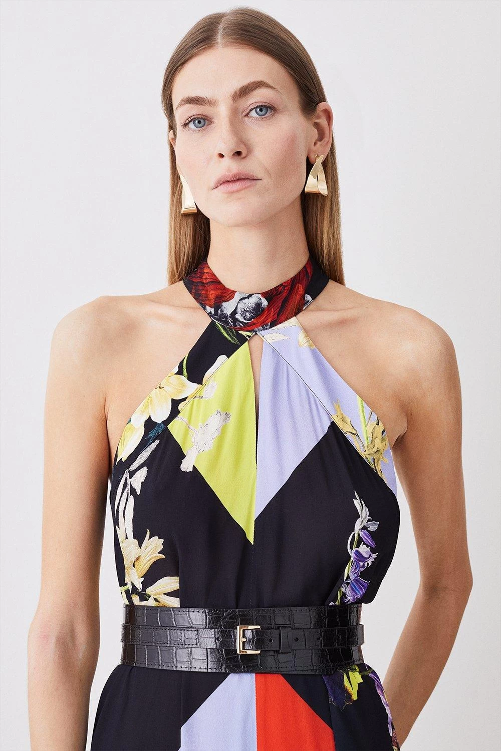 Karen Millen Colour Block Floral Halter Neck Woven Midi Dress