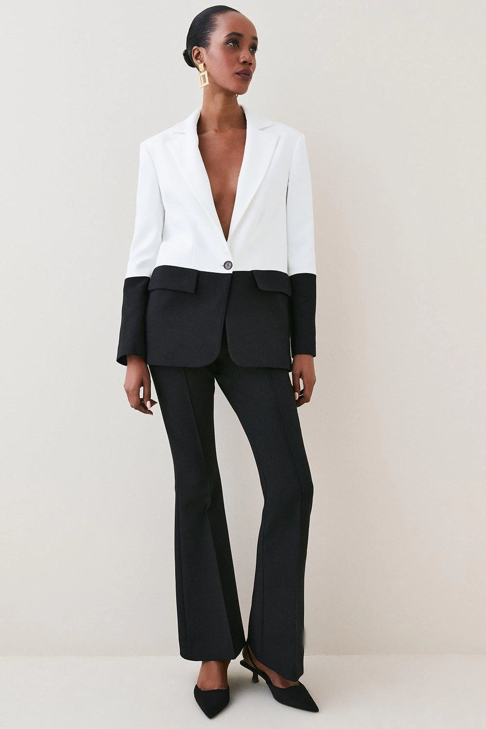 Main: 25% Recycled Polyester, 50% Polyester, 20% Viscose, %Elastane. Professional Dry Clean Only. Model wears UK size 8/ US size 4. Model height Approx: 5″9. Leg length Approx: 85cm.