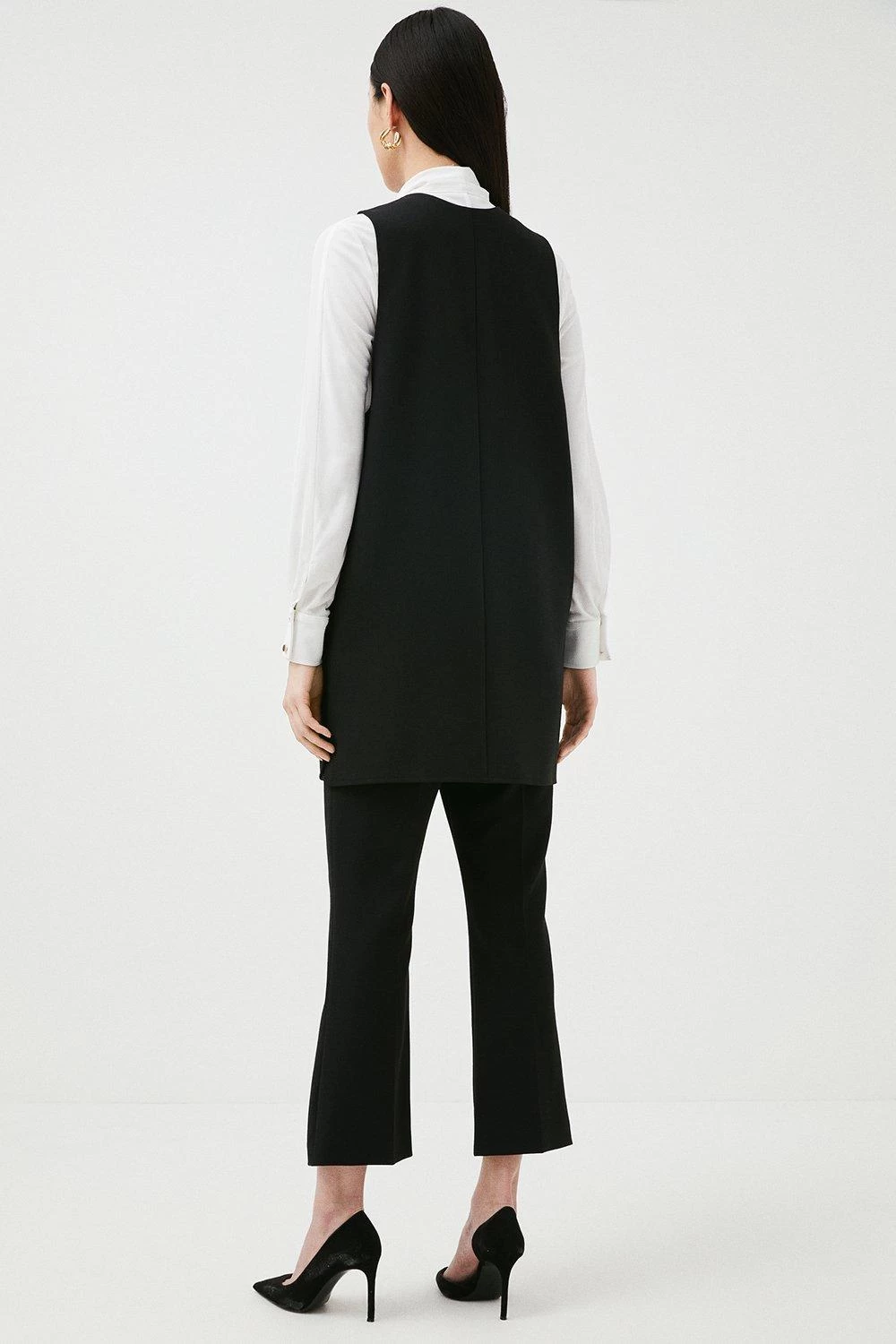 Main: 30% Recycled Polyester, 33% Polyester, 31% Viscose, 6% Elastane. Lining: 100% Polyester. Dry Clean Only. Model wears UK Size 8 US Size 4. Centre back length in a UK 10: approx 81cm.