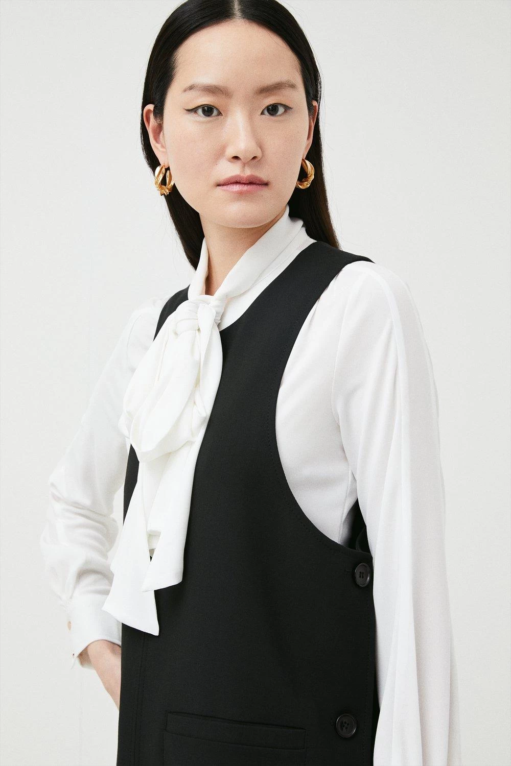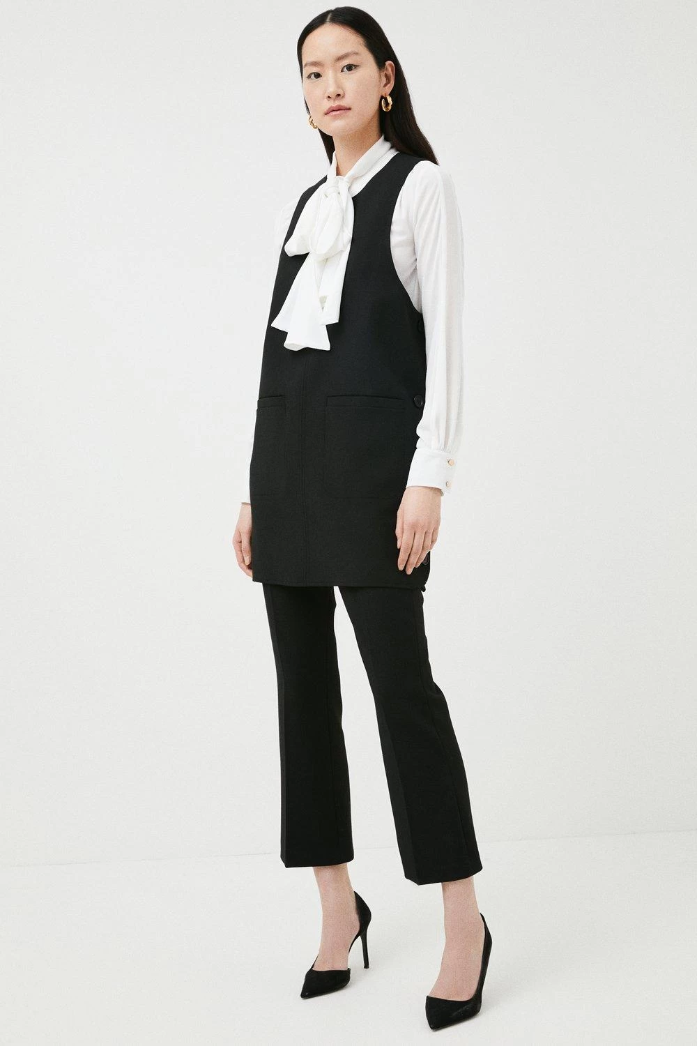 Our designers have reimagined the iconic Compact Stretch fabric in a more casual silhouette in the form of this modern tunic. Detailed with tonal buttons and roomy patch pockets, this round-necked design looks chic layered over your favourite roll neck jumper and finished with Sixties-style knee-high boots.