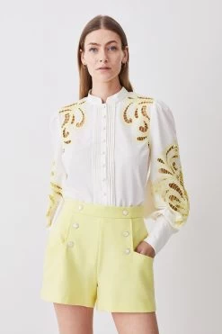 Main: 34% Viscose, 32% Polyester, 30% Recycled Polyester, 4% Elastane. Lining: 100% Polyester. Dry clean only. Model wears UK 8/US 4. Model height: 5″9. Leg length measurement: 13cm.