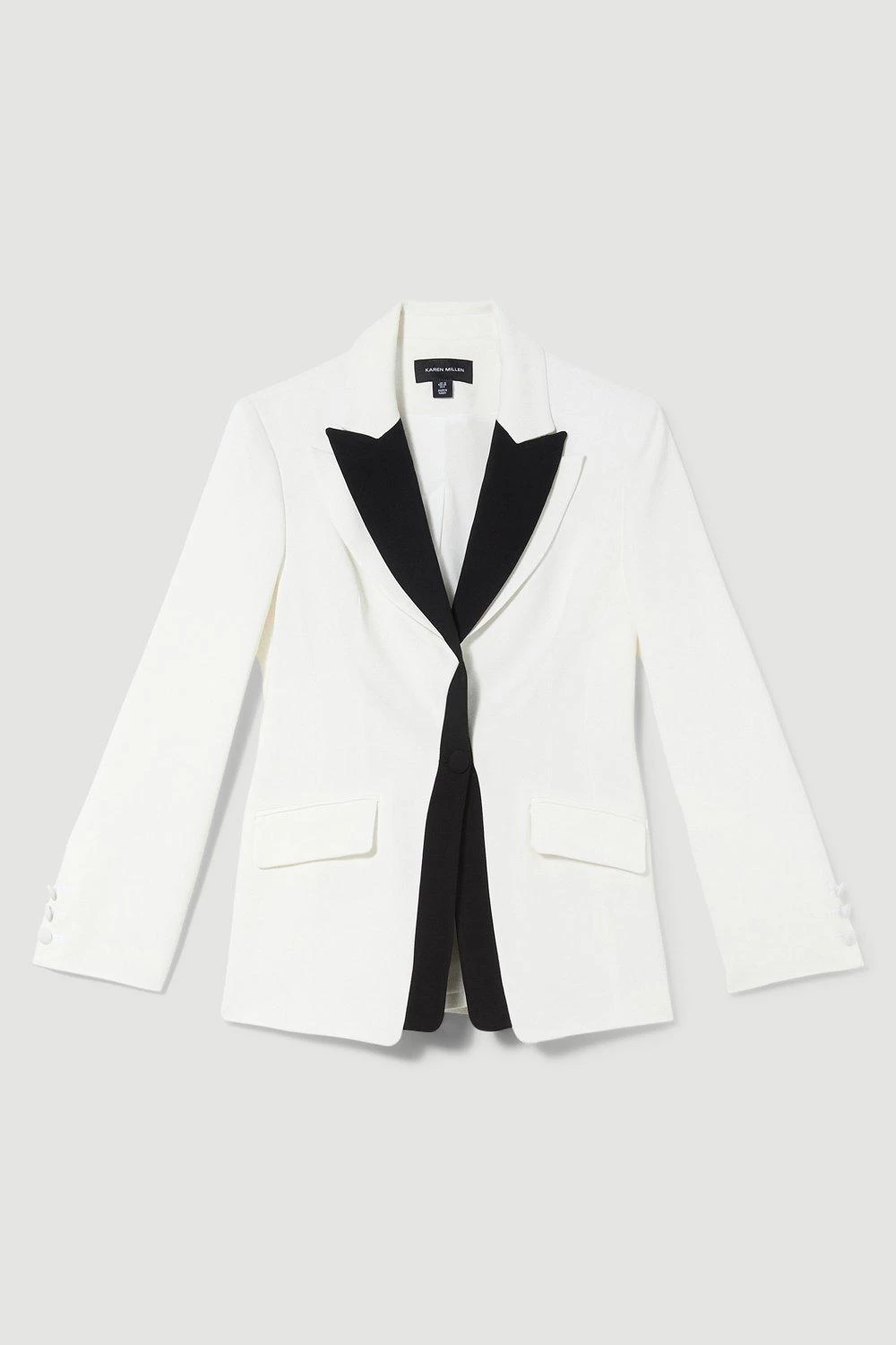 Crafted in a two-tone monochrome design, this blazer exudes fashion-forward, contemporary appeal. Defined by double-breasted contrast lapels, this piece makes an understated style statement. Style this piece with the co-ordinating wide-leg trousers for a sleek ensemble.