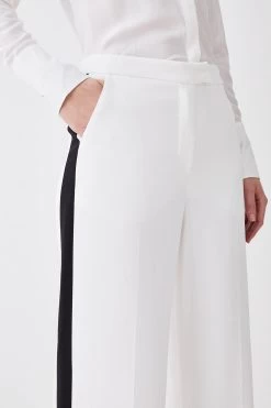 Crafted in a two-tone monochrome design, these wide-leg trousers exude contemporary appeal. A wide-leg design provides a flattering fit, while a black side panel provides a polished finish. Style with the co-ordinating blazer jacket for a sophisticated look.