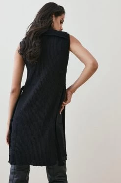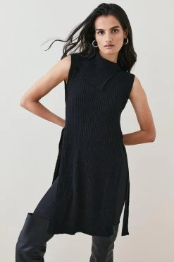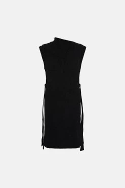 Composed for the fashion-first minimalist. Crafted to become the core of the well-curated closet, this knitted tabard top is guided by tactile ribbing – contrasting the folded collar with seamless aplomb.