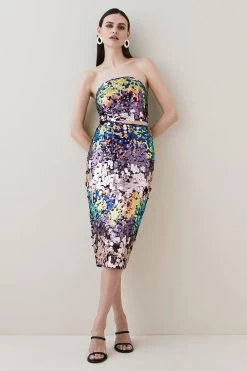 Emanate a celestial allure in this statement sequin skirt. All-over sequin embellishment makes this piece a real showstopper, perfect to wear for a night of endless dancing. The skirt drapes down below the knee, creating a tasteful and flattering fit. Style with the coordinating top for an unstoppable ensemble.