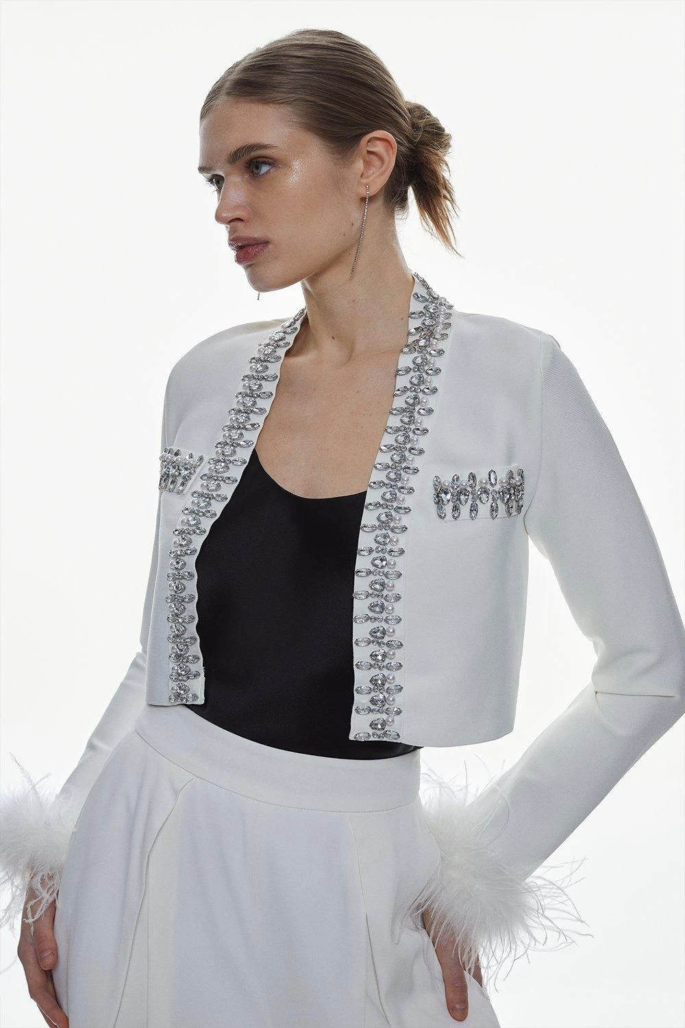 Karen Millen Embellished Bandage Jacket With Feather Cuff