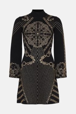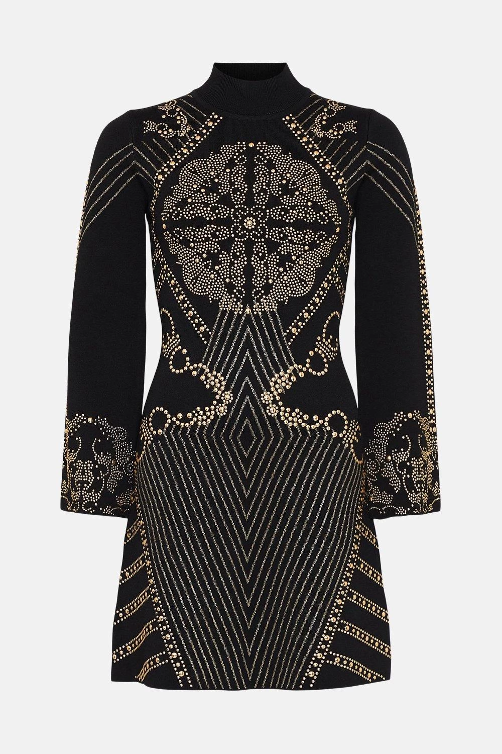 50% Viscose 44% Nylon 4% Polyester 2% Metalised Fibre. Model wears Size S. Hand wash only. Size S centre back length approx 90cm.