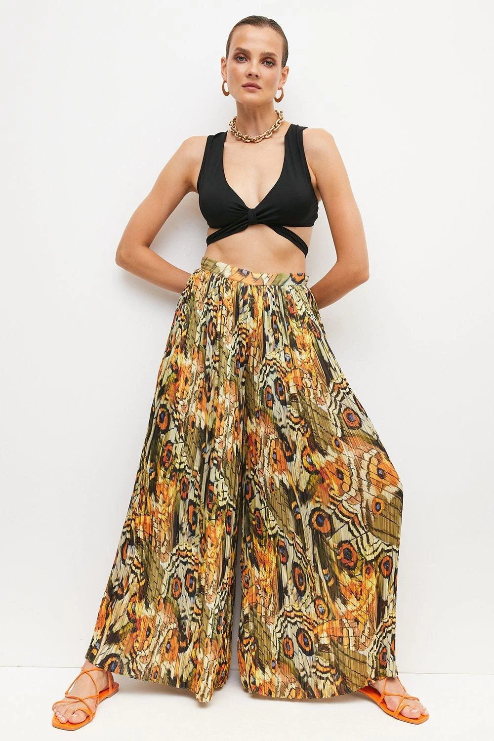 Make the beach your catwalk in these high-voltage printed trousers. Boasting a dramatic wide-leg fit and light, gauzy finish, they ripple beautifully as you move and sit high on the waist to accentuate an hourglass figure. Patterned all over with our bohemian feather motif, they suit the sun-soaked days of summer to perfection.