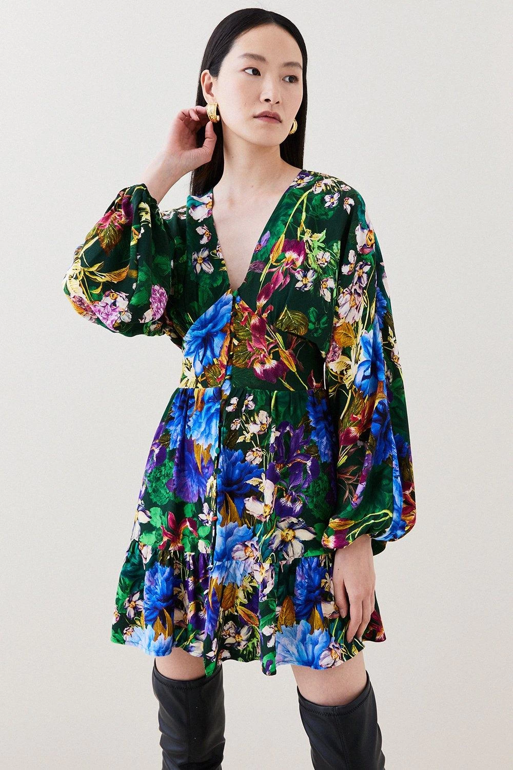 Main 100% Viscose/Rayon. Machine wash with similar colours. Model wears UK 8/US 4. Model Height 5″10. Centre Back Length: 90cm.