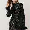 Our designers have updated an enduringly appealing fit-and-flare silhouette with grid-like checks and ethereal floral appliques on this stylish mini dress. Blending a feminine tie halter neckline with a flared skirt and low, open back, this ultra-modern piece adds a sense of directional cool to your dress collection. Spin around to show off the dramatic bow framing your shoulders.