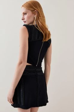 Nodding to the decadence of the Roaring ‘20s with new-found modernity, this mini skirt scintillates with a lustrous embellished finish. Pair with the matching bralette for a considered take on contemporary, cohesive styling.