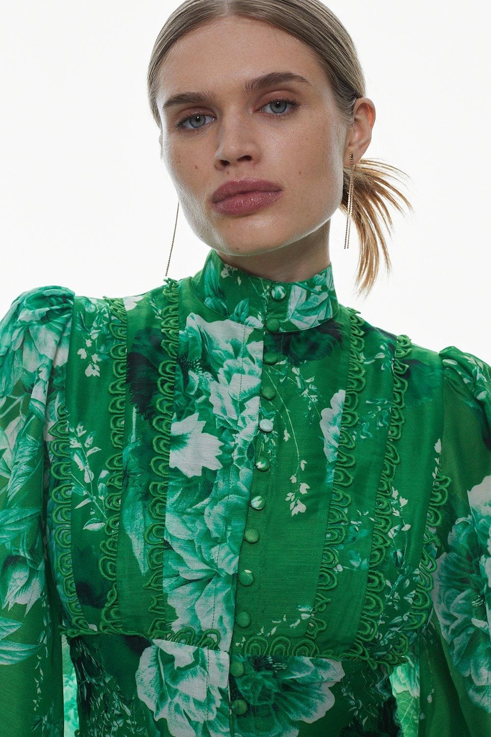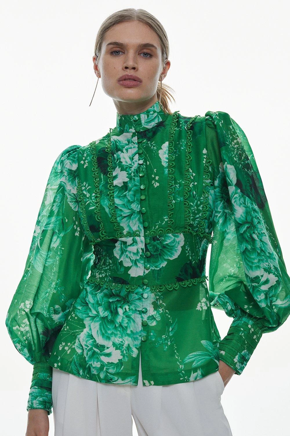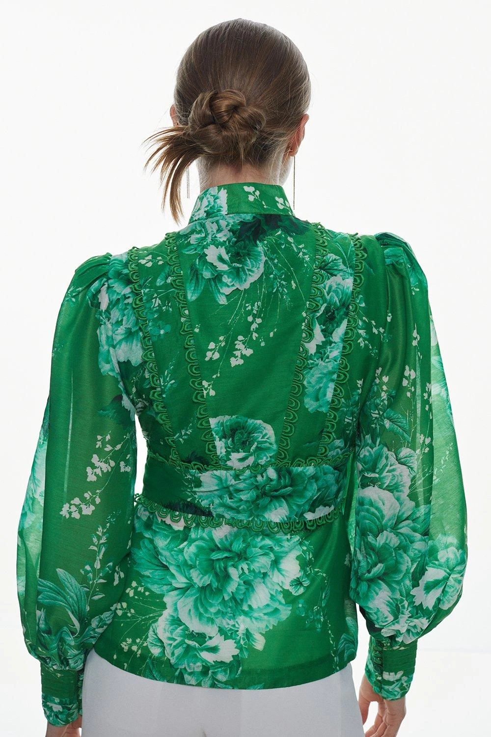 Karen Millen Graphic Lace Trim Floral Woven Blouse