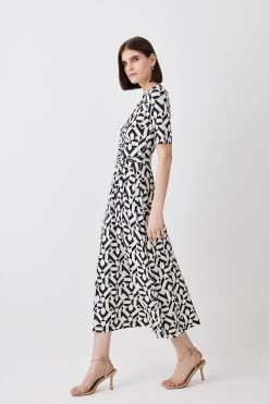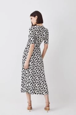 Karen Millen Half Sleeve Geometric Printed Jersey Wrap Midi Dress