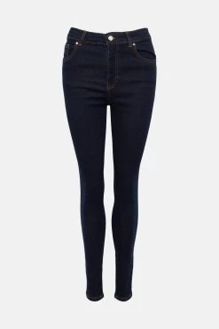 Sculpted denim jeans in indigo blue contour to the shape of the body, ensuring the perfect fit that moves with you. This is a high-waisted cut with five-pocket construction, finishing just on the ankle.
