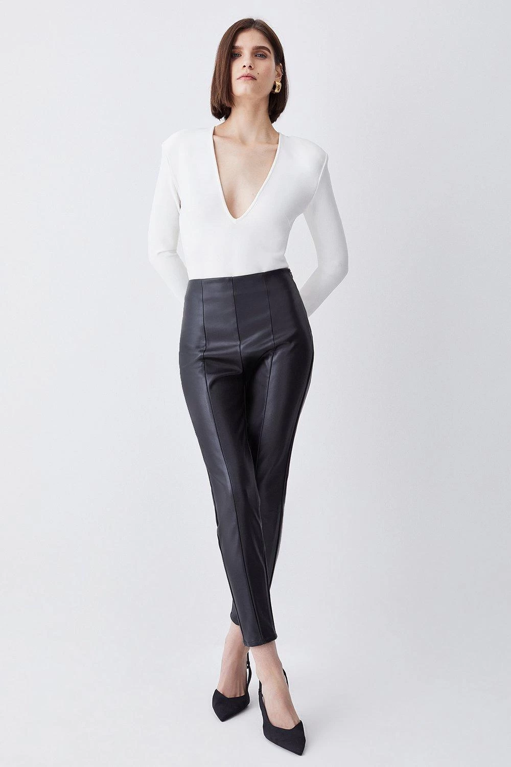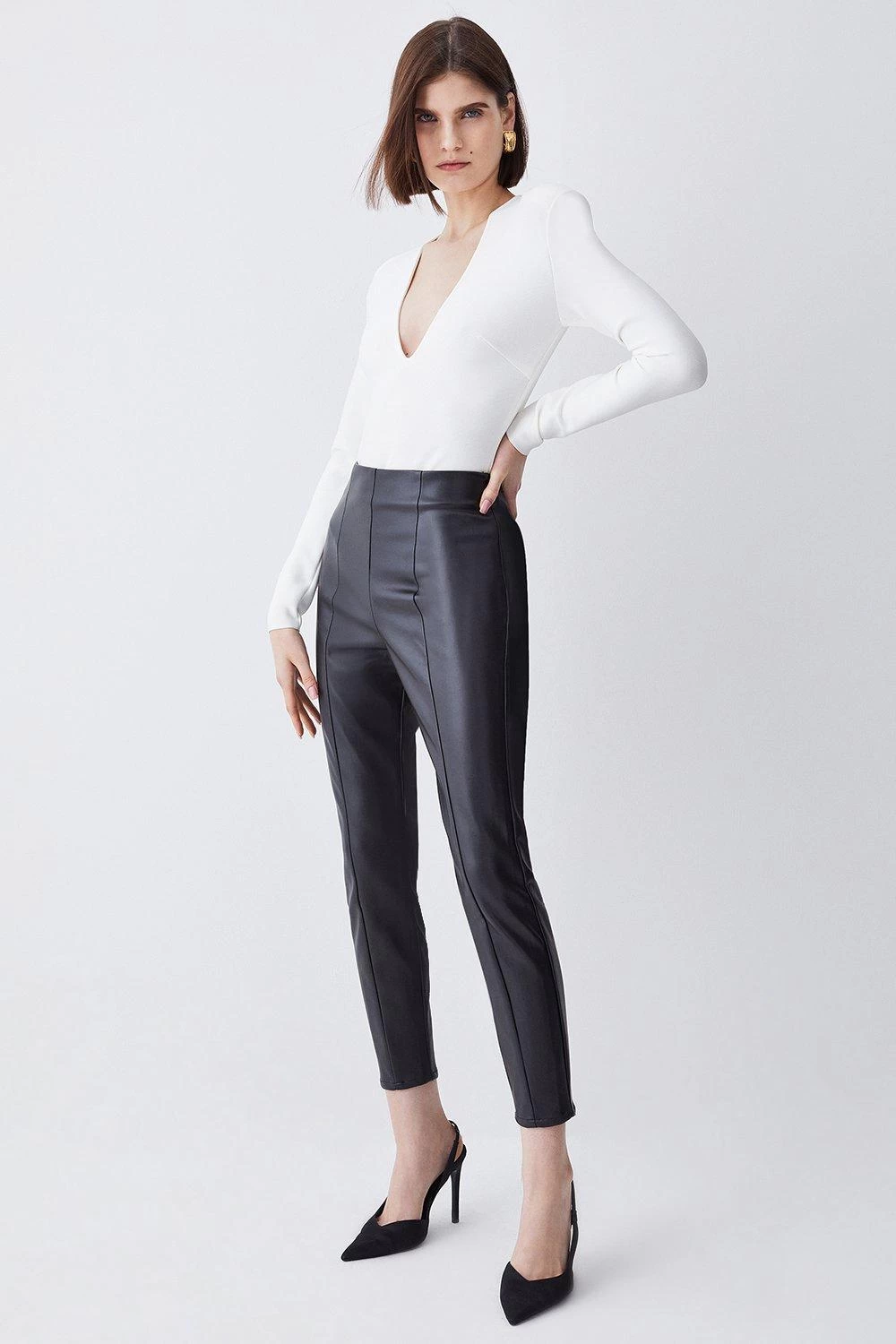 55% POLYURETHANE 45% POLYESTER. Model wears UK 8/US 4. Model height: 5″9. Inside leg measurement: 70CM