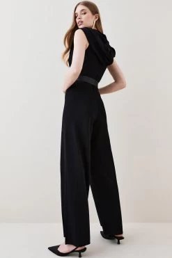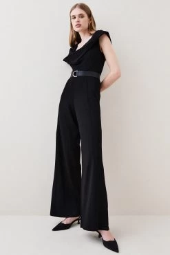Offering a contemporary design and elevated style, this jumpsuit is perfect for both smart and casual dress codes. Featuring a cowl neckline and wide leg fit, this one piece is effortlessly elegant. A hood seamlessly blends into the neckline, showcasing both innovative style and comfort.