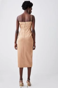 Main: 75% Acetate, 22% Polyamide, 3% Elastane. Lining: 100% Polyester. Dry clean only. Model wears UK 8/US 4. Model height: 5″9. Length measurement: 98cm.