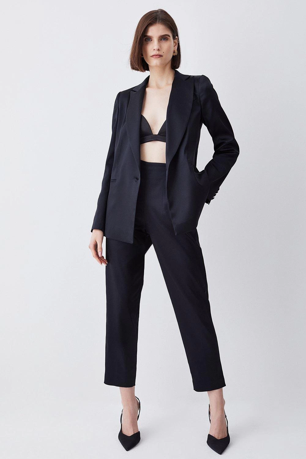 Marrying casual and cool with effortless ease, these trousers provide the foundations to endless outfits. The satin profile provides a sleek aesthetic, while a high-waisted cut provides a flattering fit. Pair with the matching satin blazer for a truly sophisticated look.