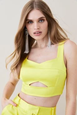 Sumptuous Italian satin lends this silky top a softly structured feel. Detailed with a bold front cut-out and sweetheart neckline, it accentuates the bust beautifully, with a hem that sits high on your waist to draw the eye to your slimmest point.