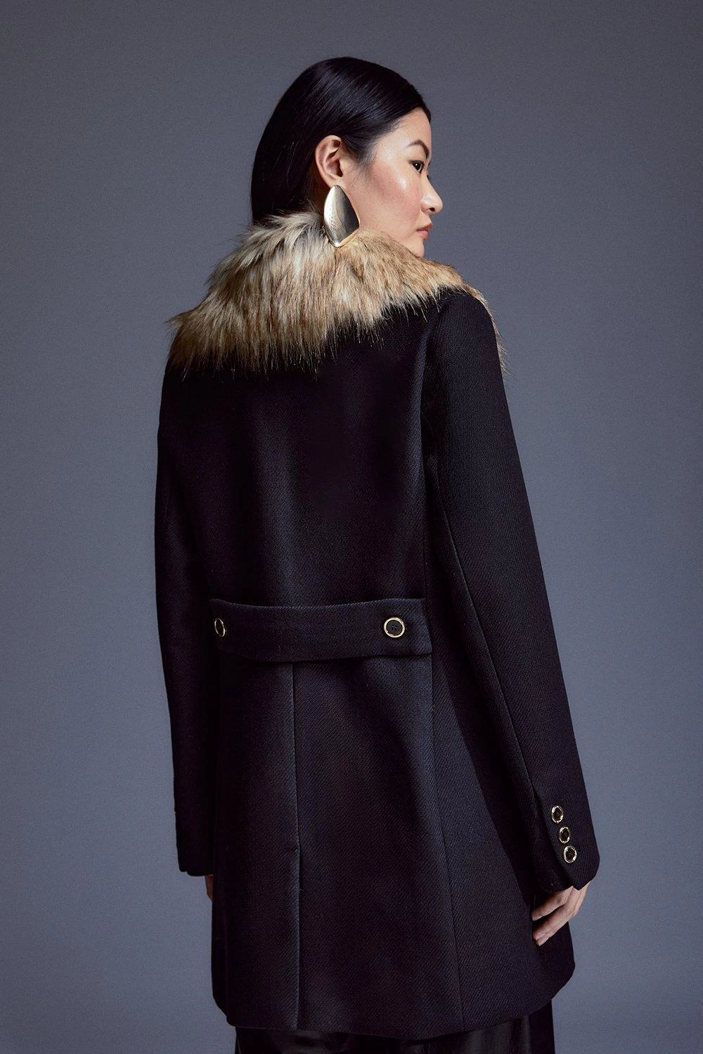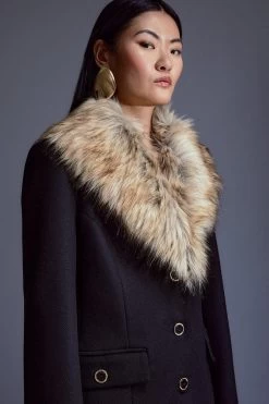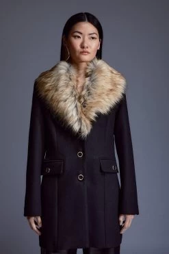 Combining a timeless silhouette with a touch decadence, this coat exudes covetable elegance. The collar is crafted with a swathe of soft faux fur, infusing the coat with undeniable luxury, while Italian virgin wool ensures a sumptuous feel.