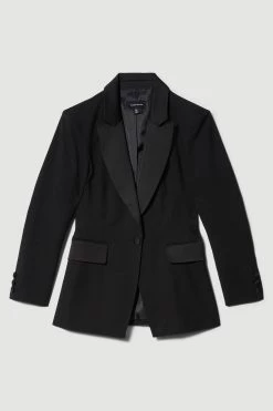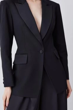 Karen Millen Italian Wool Satin Tailored Single Breasted Tux Jacket