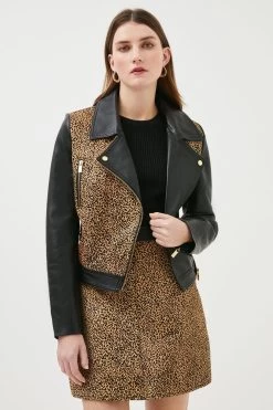 Our signature leather skirt is reimagined with high fashion direction for this panelled piece. Expertly crafted from nappa leather with a textured finish, it has a high-rise waist in contrasting brown for an eye-catching effect. Falling to an A-line silhouette with leopard detailing throughout, it’s secured with a rear zip. Pair with the matching jacket and knee-high boots for a contemporary take on timeless coordination