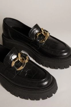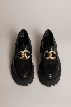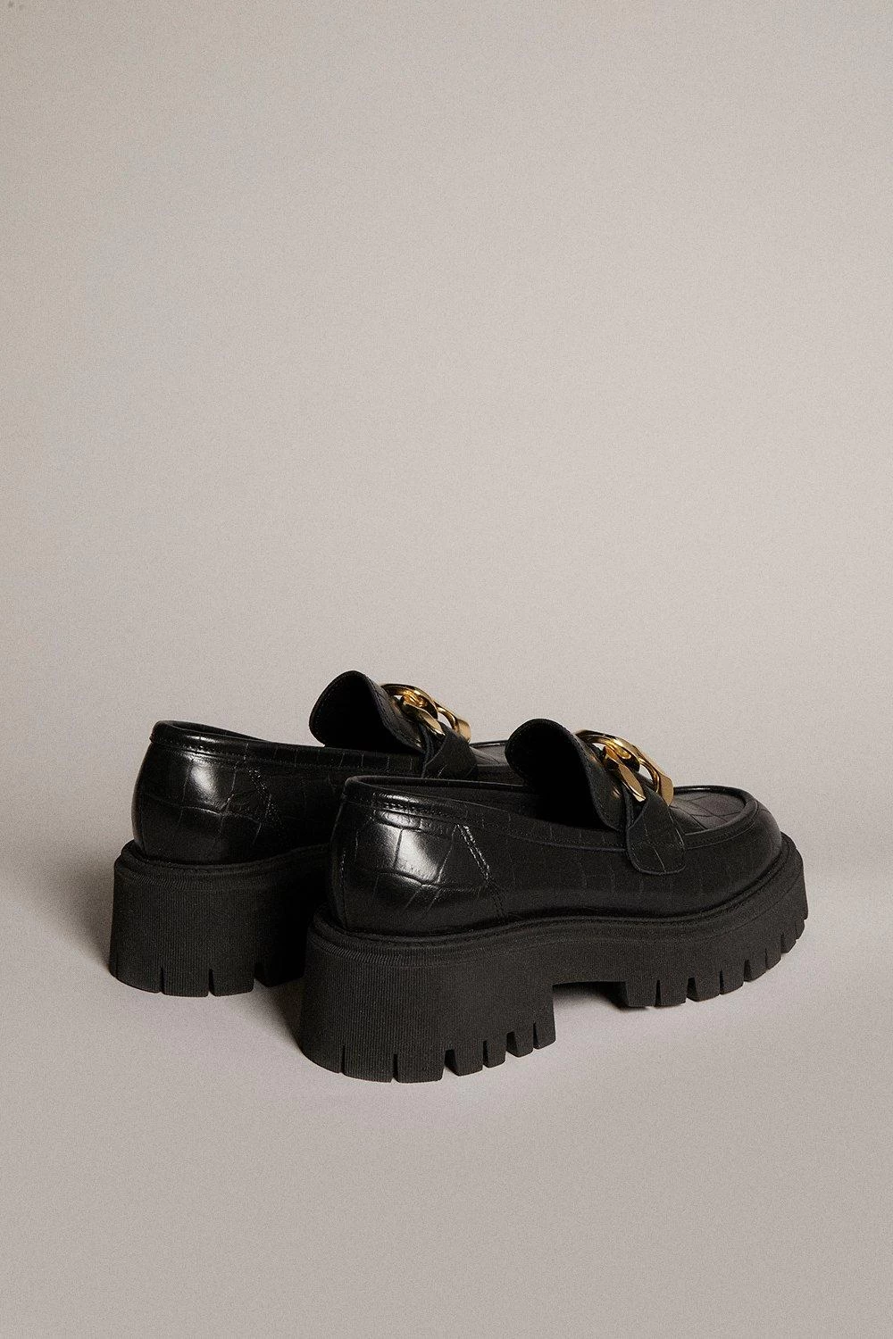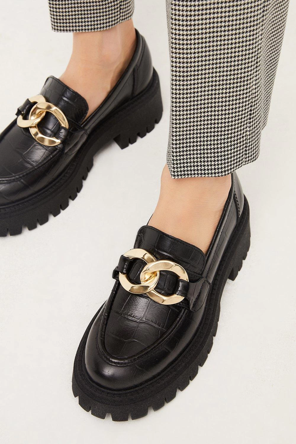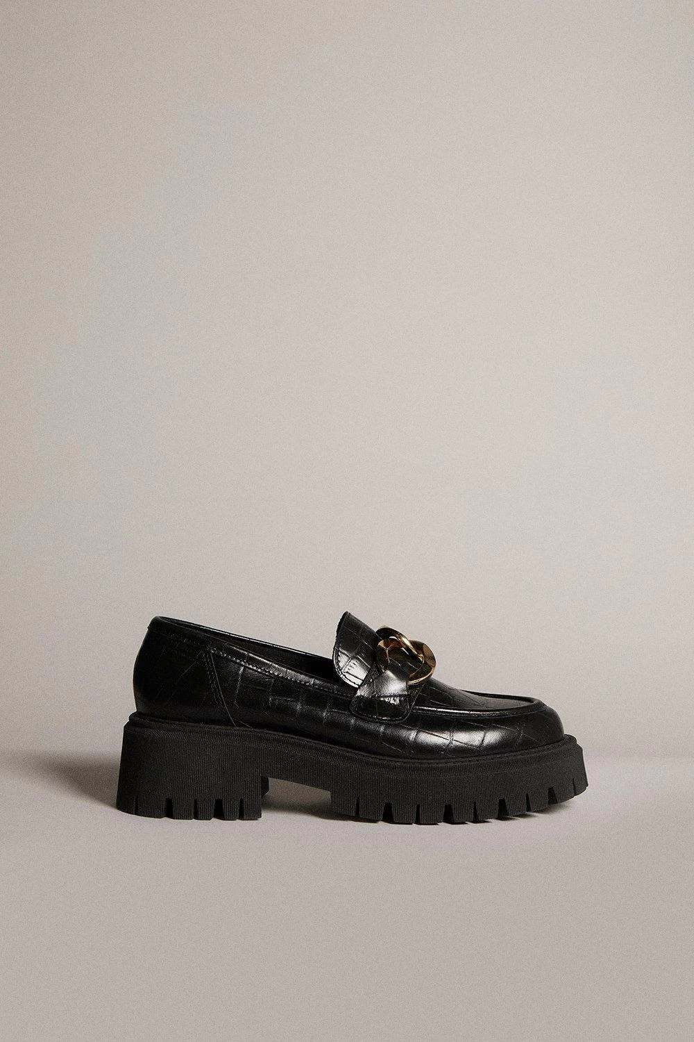 Borrow from the catwalk in these directional leather loafers. Stacked high on chunky soles, they elevate any ensemble with ease and show off gleaming gold-tone hardware, round toes and crocodile-embossed leather for a touch of texture.