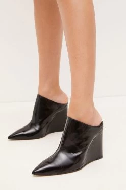 A modern update on the coveted mule, this striking patent pair features pointed toes, wedge heels and a directional slip-on fit. In a range of vibrant shades, they effortlessly modernise all-black ensembles and floaty summer dresses alike.