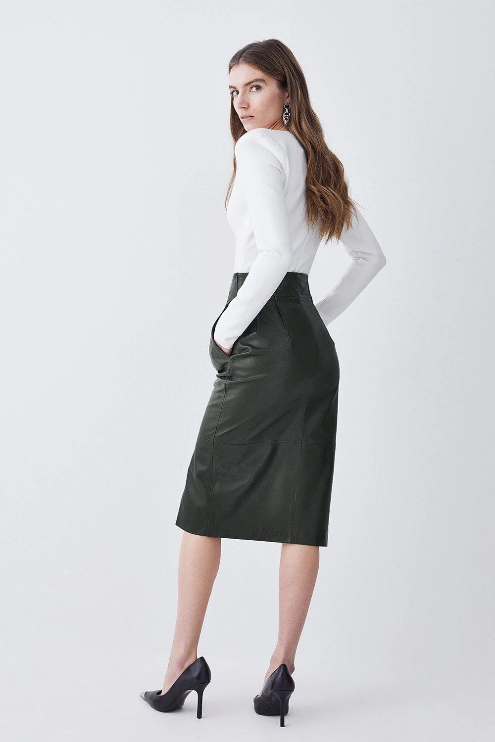 Main: 100% Responsible Leather. Lining: 100% Polyester. Model wears UK size 8/ US size 4. Model height Approx: 5″9. Length Approx: 73cm.