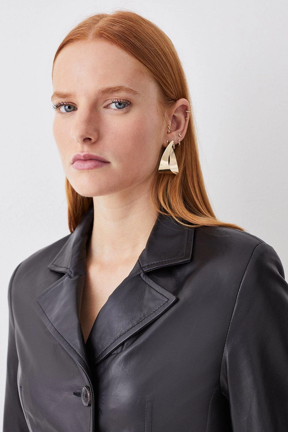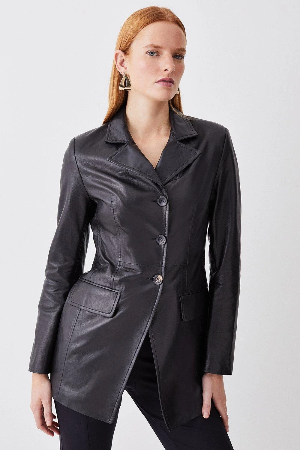 Fusing traditional tailoring with sumptuous leather, this blazer promises to add a considered edge to any ensemble. Boasting a slimline fit, this piece can be paired with tailored trousers or a maxi skirt for a polished look. The blazer is finished with signature KM embossed buttons for a premium touch.