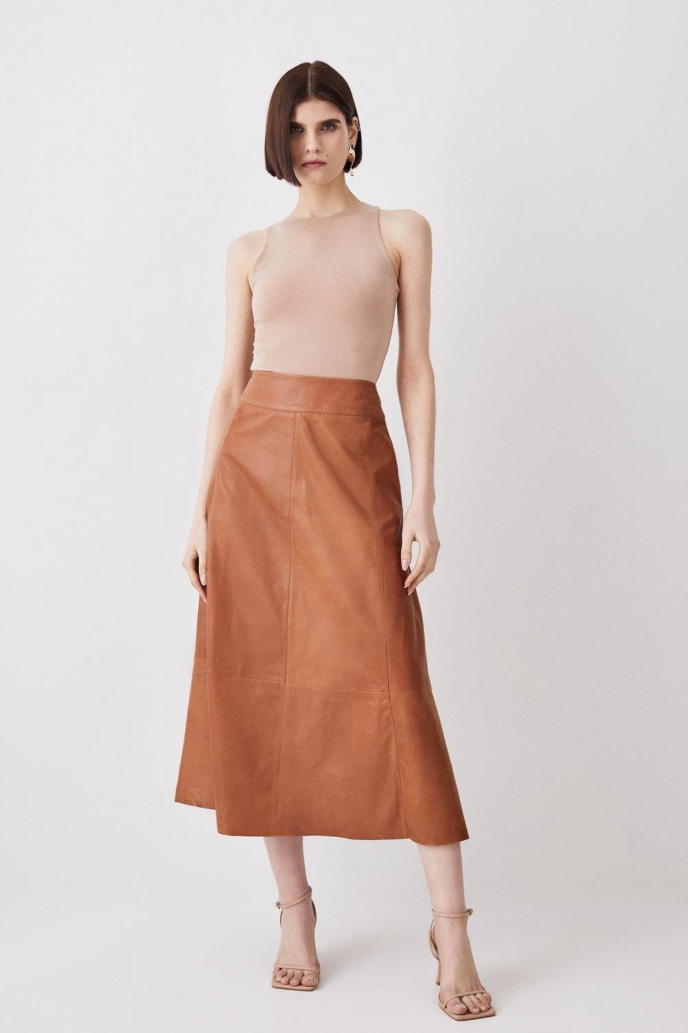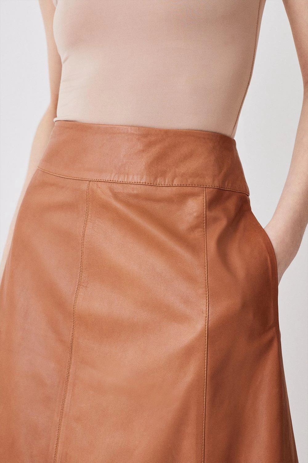Karen Millen Leather Veg Tan Full Midi Skirt