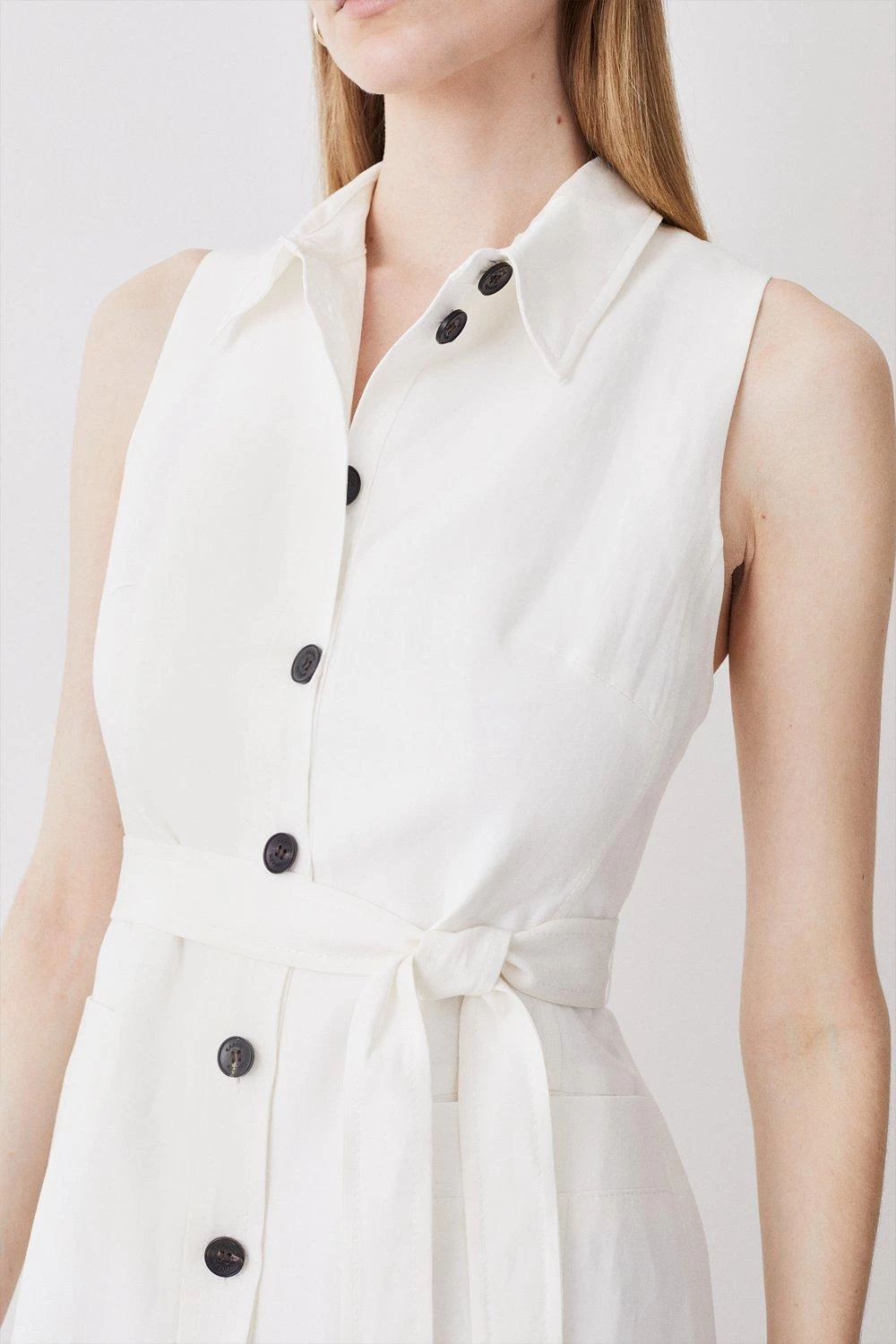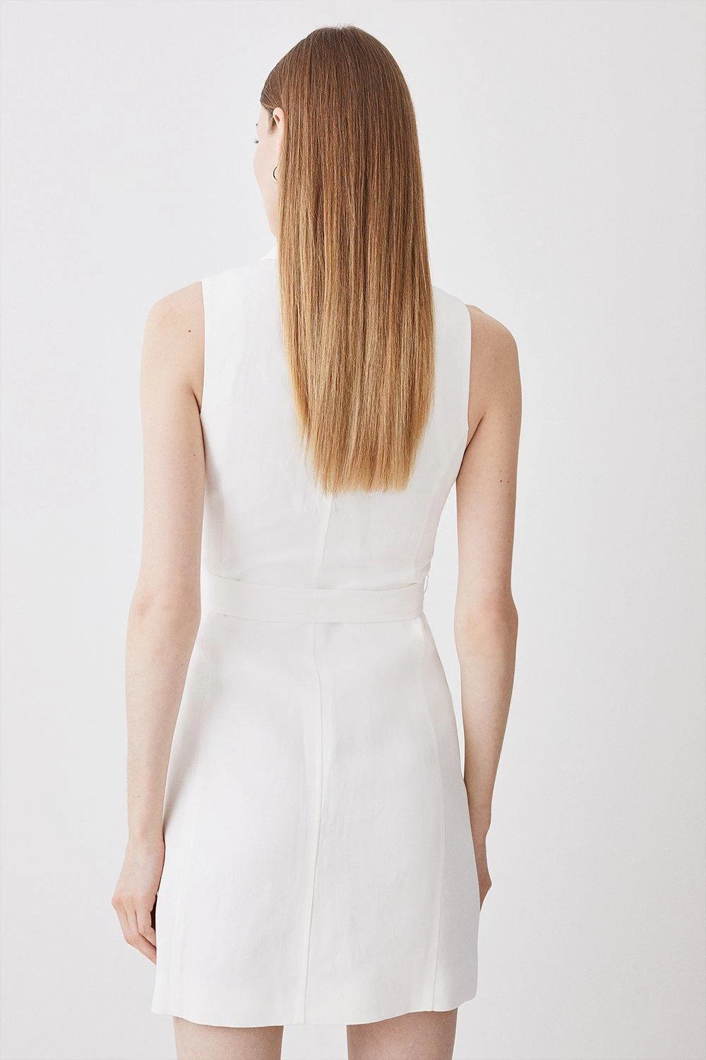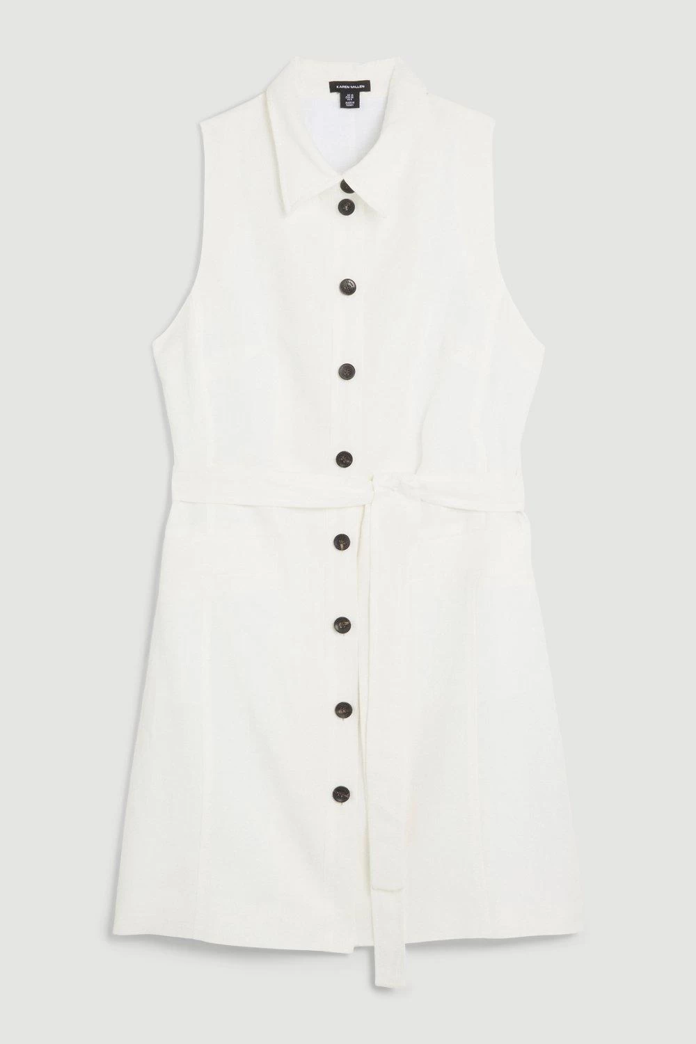 Meticulously crafted with a linen composition, this mini dress exudes a relaxed-yet-refined aesthetic. A wrap belt cinches the waist to create a flattering silhouette, while Karen Millen embossed buttons add a signature finish.