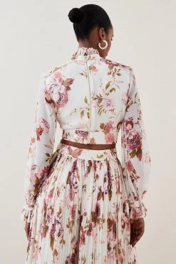 Exude feminine allure in this long-sleeved ruffle chiffon blouse. Corset-style panelling subtly cinches the silhouette, while balloon chiffon sleeves add a whimisical feel.