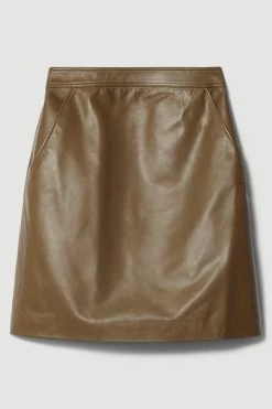 An iconic staple with timeless appeal, this leather mini skirt is an essential addition to your capsule wardrobe. A high waistband and A-line silhouette ensure a flattering fit, pair this piece with knee-high boots and a jumper to achieve an autumnal aesthetic, or choose heels and a blouse for an elevated look.