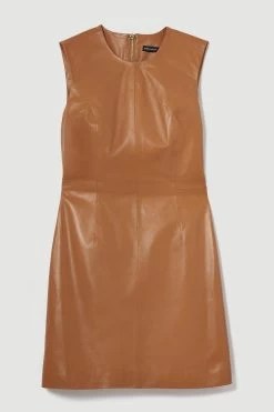 This mini dress exudes retro-inspired charm with a modern twist. The sleeveless design is the perfect solution to wearing leather in warmer climes, and is complemented by an A-line mini skirt. A rear zip fastening provides functionality. Style this dress with nude heels for an evening look, or leather boots for a pared-back ensemble.
