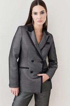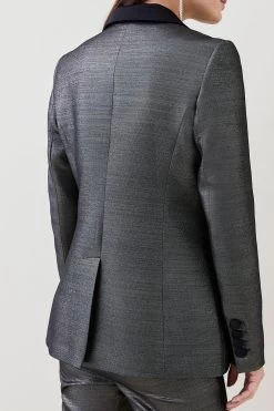 Main: %77 Polyester, 23% Metallic Fibre. Professional Dry Clean Only. Model wears UK size 8/ US size 4. Model height Approx: 5″9. Length Approx: 68cm.