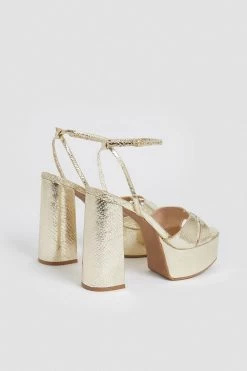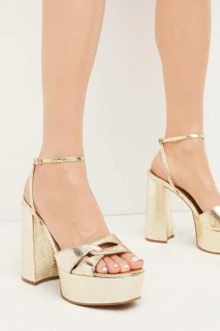Take summer party looks to bold new heights with these go-getting platform sandals. Crafted from luxe Spanish leather, their textured metallic finish and chunky soles nod to the decadence of the disco era. Finished with slender ankle straps and unique cut-outs, this open-toed pair were made to dance all night long in.