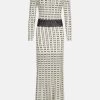 Defined by an intricate geo pattern and monochrome palette, this dress exudes classic elegance. A tie waist detail cinches the waist to add definition to this fluid silhouette, characterised by a soft pleated skirt and balloon sleeves.