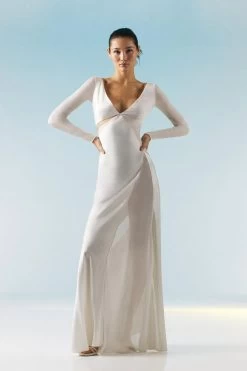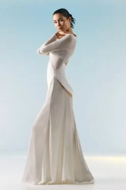 Emerging as a vision of both elegance and sensuality, this dress showcases endless appeal. An asymmetric mesh panel nods to a fashion-forward aesthetic, while silky material enhances the form to create a fluid silhouette.