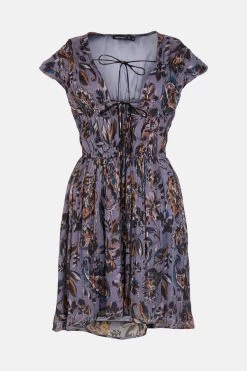 Embodying summerโs bohemian mood, this paisley-print mini dress shows off artisanal details โ think double neck ties and a floaty, high-low hem โ for a modern romantic effect. Fitted with neat cap sleeves and a gathered waistline, it pairs perfectly with the seasonโs tan sandals on sunny days.