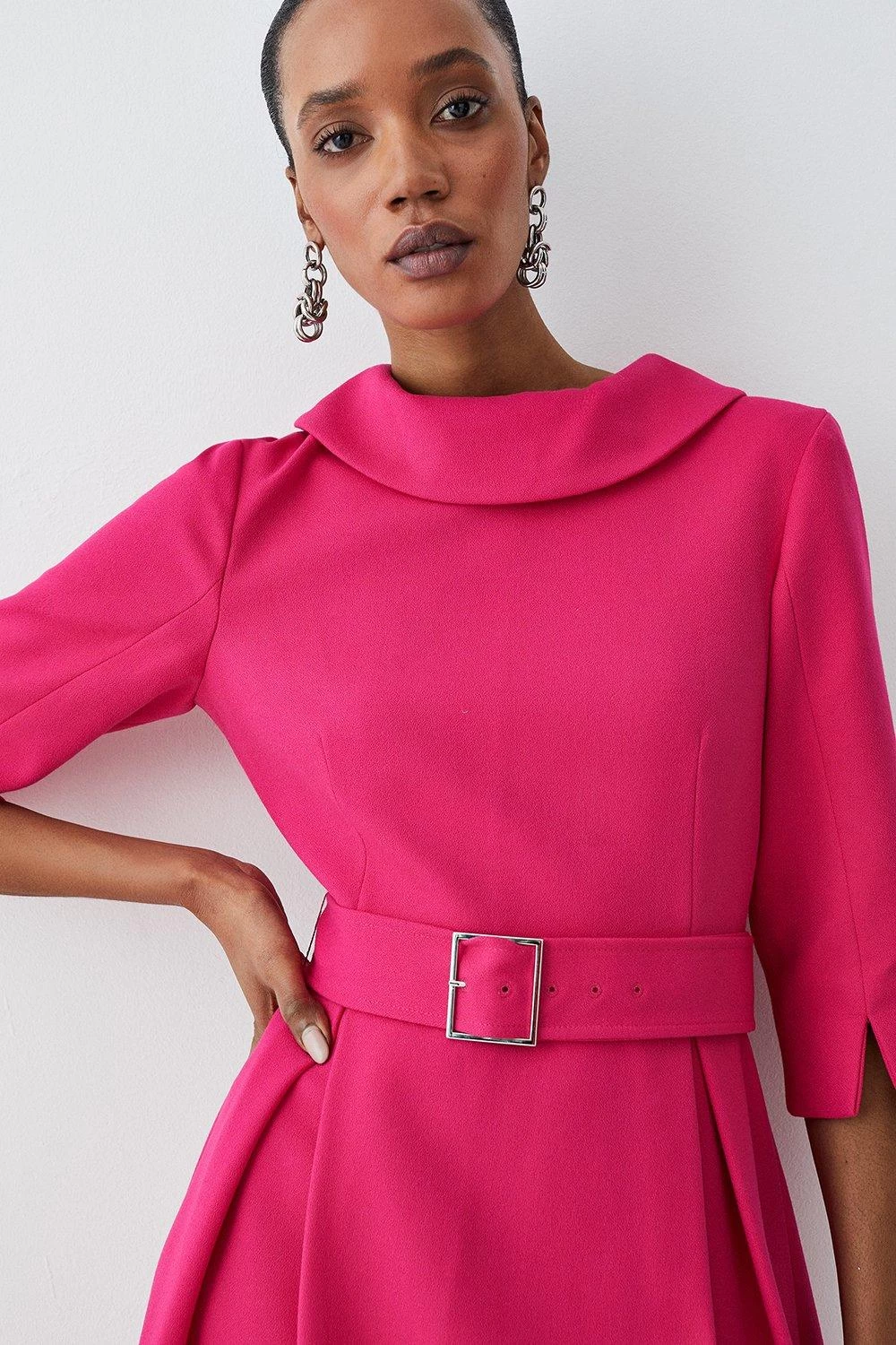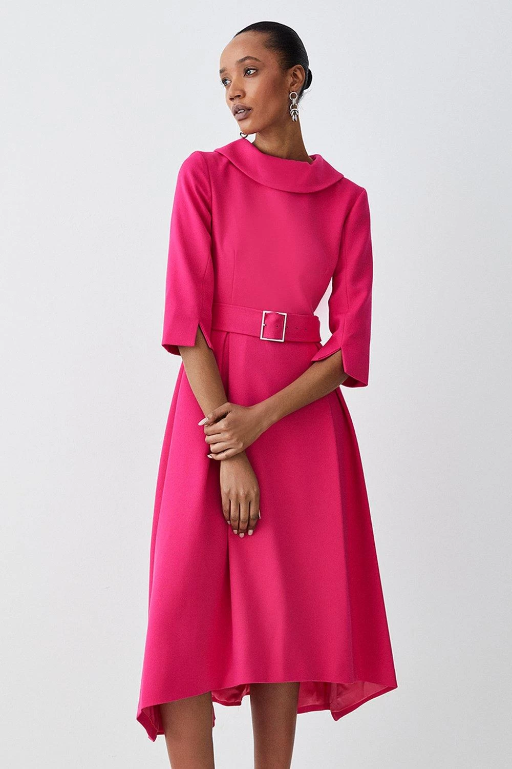 Karen Millen Petite Compact Stretch Roll Neck Dip Hem Midi Dress