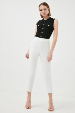 Crafted from lightly stretchable fabric, these trousers are super-soft and super-flattering. Lightly grazing the ankles with a cropped length, the split hems allow ease of movement. Cut high on the waist to emphasise your shape, they feature a side zipper closure for a streamlined finish.