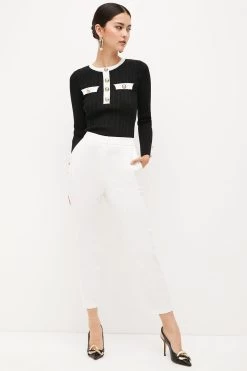 Timeless tailoring for the true sartorial curator. Built for season-to-season outfit building, the straight leg trousers are a tried and tested wardrobe treasure. They have a high-rise waist, side pockets and a seamless construction. Landing at a cropped length, channel Parisian elegance with classic loafers by day and glossy stilettos by night.
