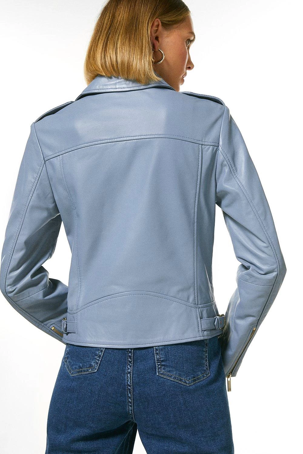 Designed in buttery soft leather, this jacket is truly something special. The classic biker styling works harmoniously with its statement double-breasted front and chunky zip closures for an edgy finish. Featuring our signature KM logo and embossed detail, the gold buttons offer an elevated feel to your new favourite go-to layer.