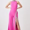 Main: 100% Polyester. Lining: 100% Polyester. Professional Dry Clean Only. Model wears UK 8 US 4. Leg Length Approx: 78cm.