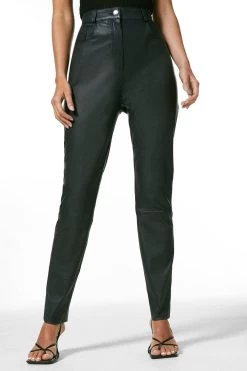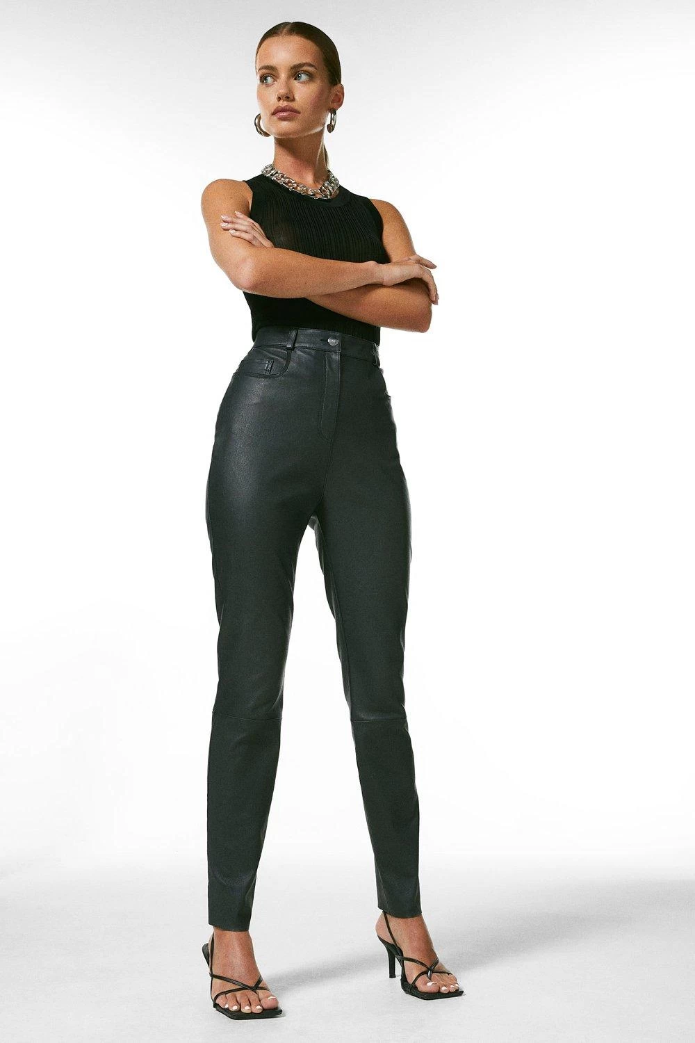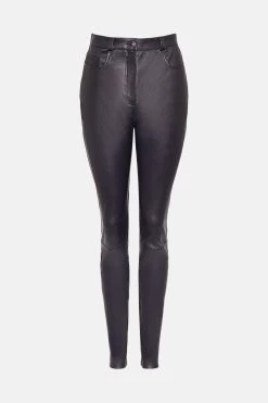 Crafted using premium leather,, there’s not a pair of jeans more sumptuous. Feeling like a second skin when worn, your figure is coated and enhanced in luxury. Emphasising the waist with an iconic high-rise style, they’ve been finished off with glossy metal closure and stitching that’ll highlight all the right places.